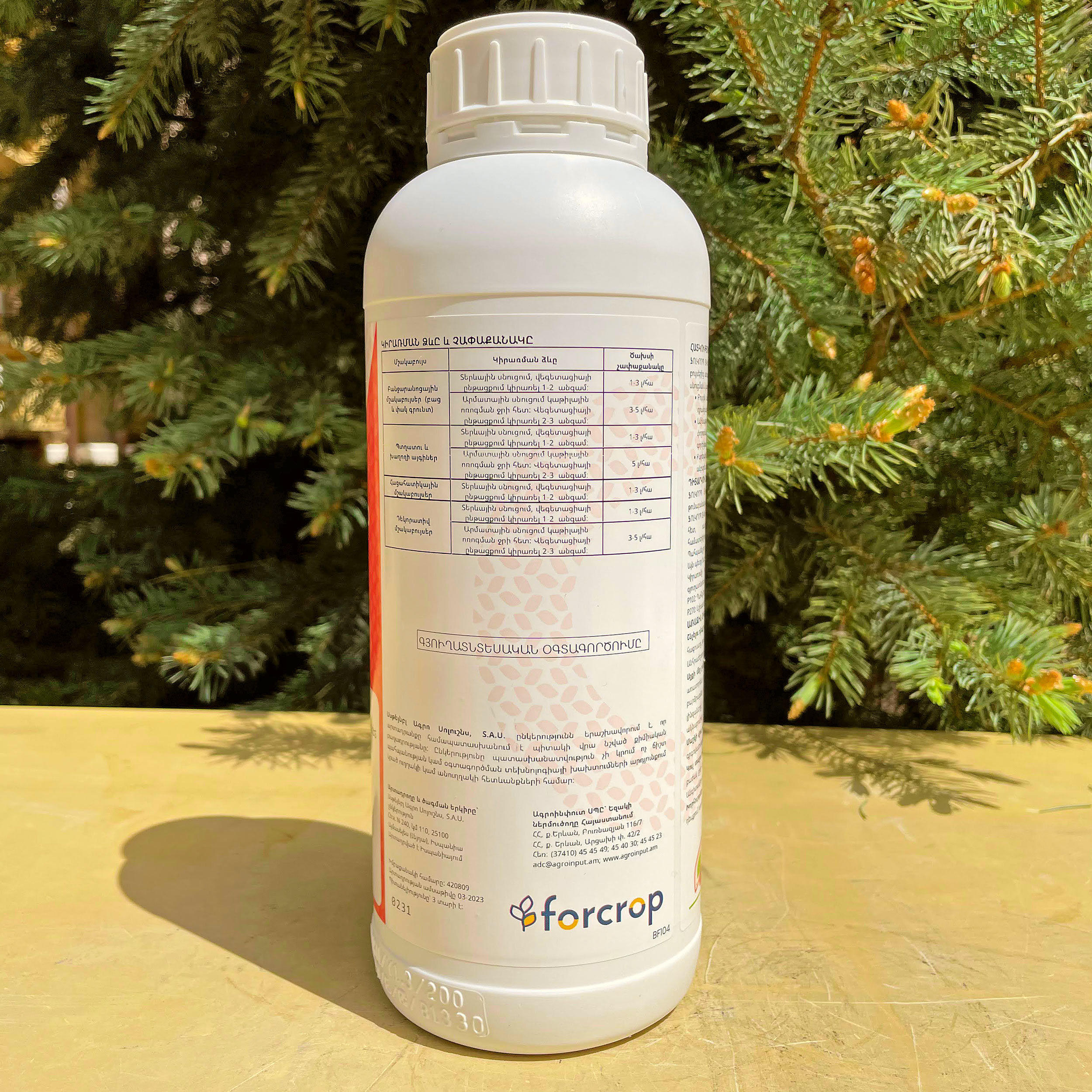Արմատային սնուցում կաթիլային ոռոգման ջրի հետ: Վեգետացիայի ընթացքում կիրառել 2-3 անգամ: | Ծախսի նորման` 3-5 լ/հա