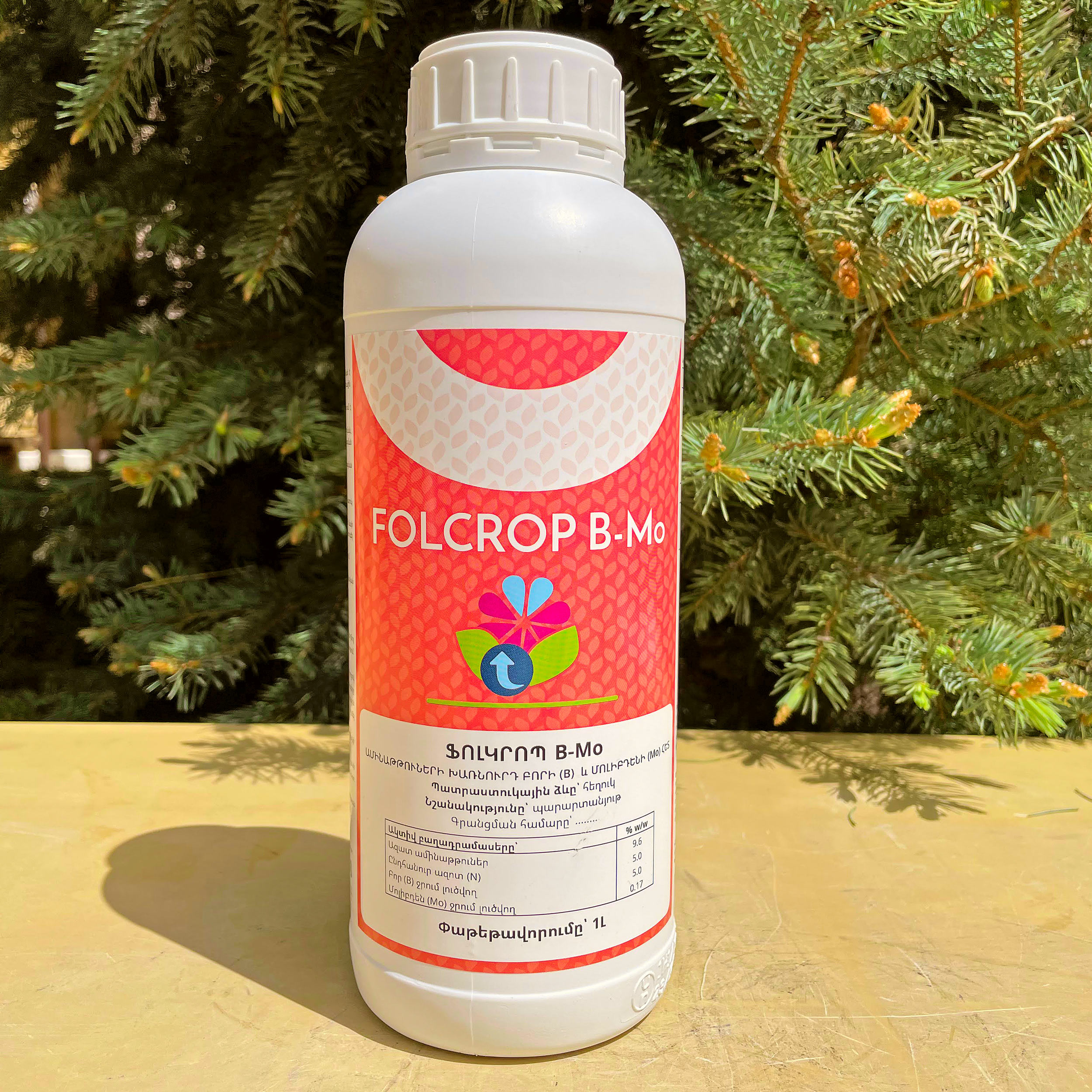 ՖՈԼԿՐՈՊ B-Mo ջրում լուծվող հեղուկ պարարտանյութ է, հիմնված է բույսերից ստացված ամինաթթուների վրա, նախատեսված է տերևային սնուցման և կաթիլային ոռոգմամբ պարարտացման համար: